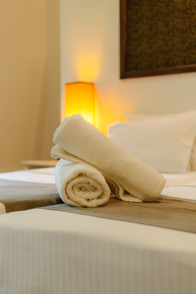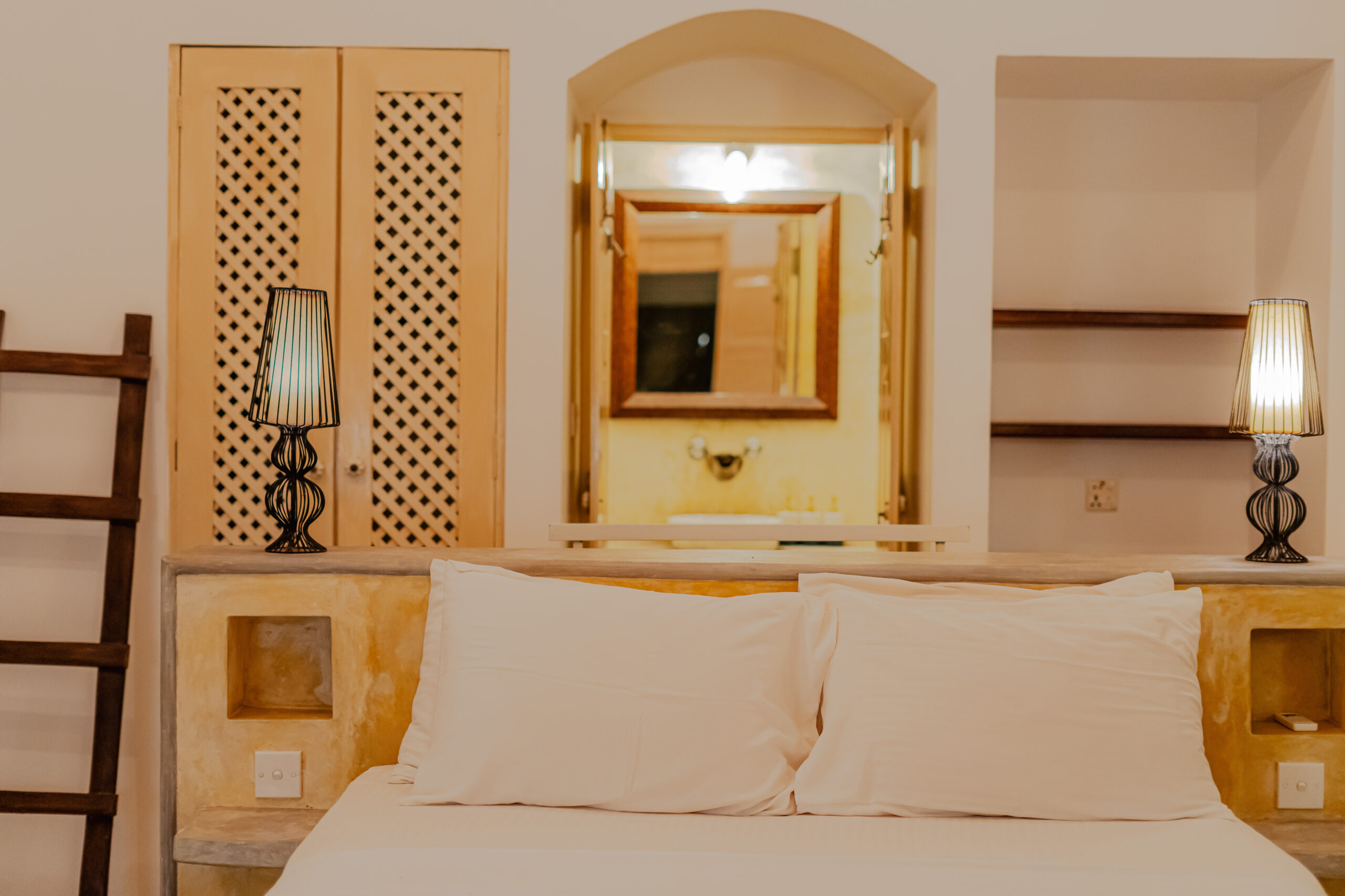 - Elegant interiors combine soft tones, local textures, and handcrafted details.